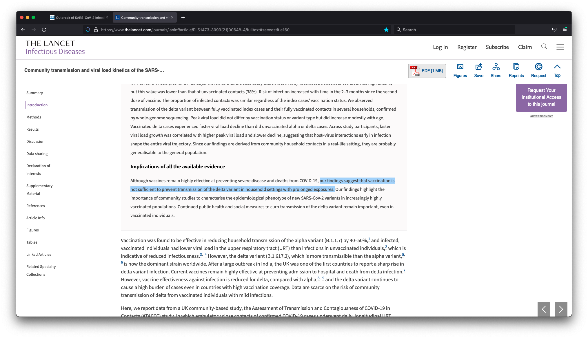 The Lancet (Oct.29.2021) published a study finding that being vaccinated does not protect against spreading the virus.